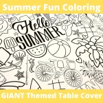 This giant coloring sheet also makes for great for everyday screen-free boredom busters after school or on a rainy day! Watch your family come together over the table for coloring time.