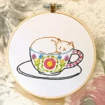 Take a break from work with a steaming cup of catpuccino! This beginner-friendly pattern features a coffee mug decorated with pastel flowers with a cozy kitty napping inside. With 8 stitches covered, this is a great sampler to learn and practice your stitches.
