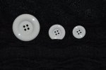 These sew through style white buttons are available in 3 sizes: 18mm, 23mm, and 38mm. These buttons are sold individually, please select the desired size and quantity from the drop down menu above before adding to cart.