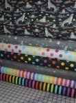 Graywork is a follow up to my black and white collection titled "Linework" from 2020. This is a neutral collection designed in various shades of gray to fill the spaces between the rainbows. Graywork began as a collection of all gray prints and slowly blossomed to include touches of color to spice things up. I find it impossible to leave something completely void of color. For the main prints of the collection I focused on animals that live their lives in shades of gray; Wolves, Bears, Snow Leopards, Puffins and Sea Lions. These eight prints are big and illustrative, packed with details designed for fussy cutting as the stars of the show. The coordinating prints are variations on existing True Colors prints with some new pieces for texture. These might be the back-up dancers to the hero prints, but they are essential to connecting the prints and filling in the gradient or grays. The multi-colored Stripe is back on both a soft gray and a charcoal gray ground, and the Poms have been added to the party in a new rainbow version to coordinate with the stripes! You will find new medium and dark shades of Fairy Dust sprinkled in amongst the classic tonal grays for backgrounds and blending. The last thing that I felt this collection really needed was something that could act like a solid which came in the form of new Tiny Dots and a brand new print of tonal repeating triangles called Kinda Shady. While packed with artistic details this collection is designed, first and foremost, to be useful. Leave it be or add in my other collections for maximum versatility.